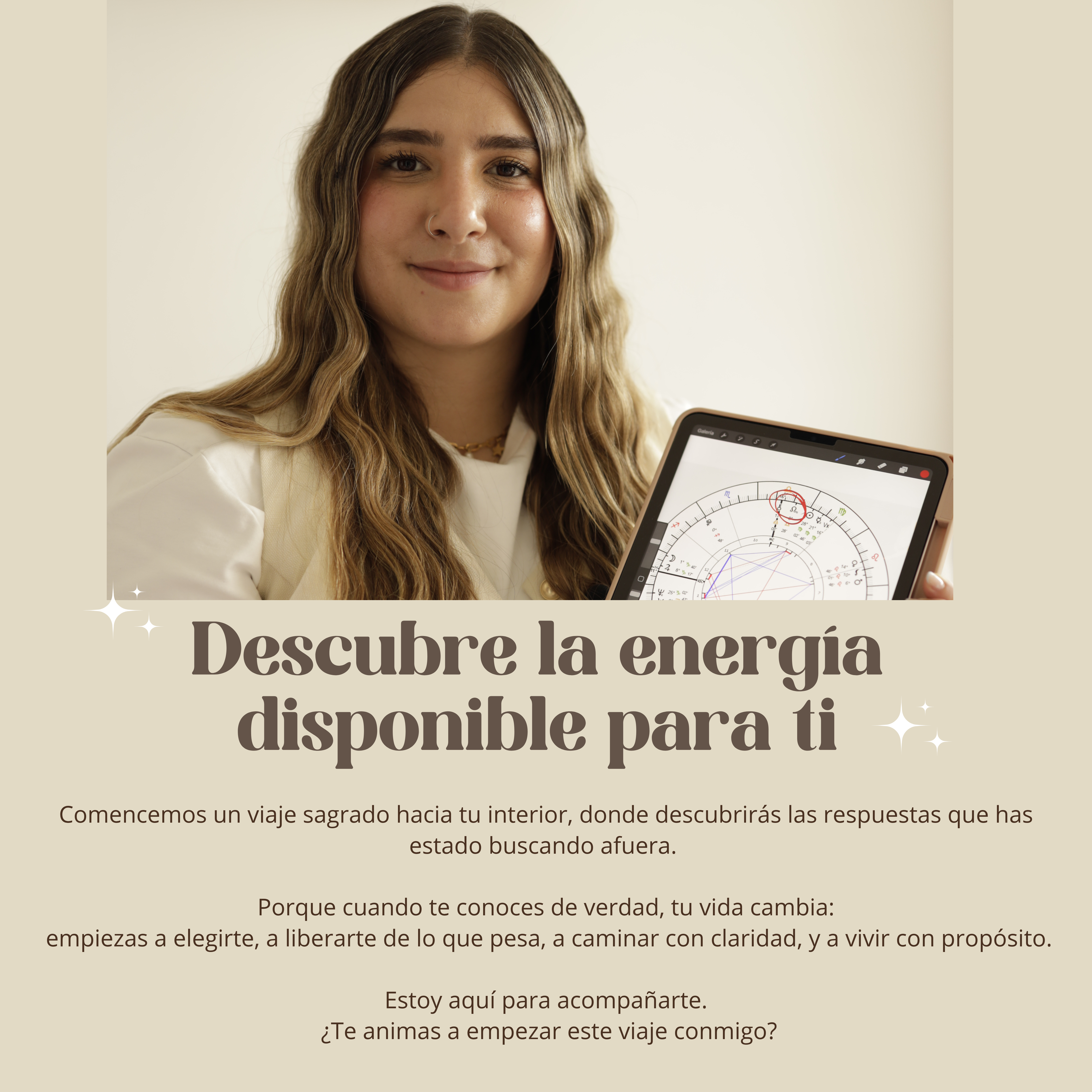 Exploremos tu carta astral y descubramos qué vienes a vivir en cada una de las áreas de tu vida, amoroso, personal, profesional, espiritual, en el dinero, familia, grupos, espiritualidad etc..